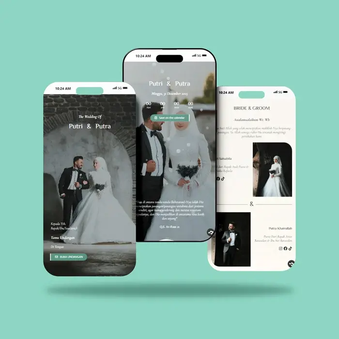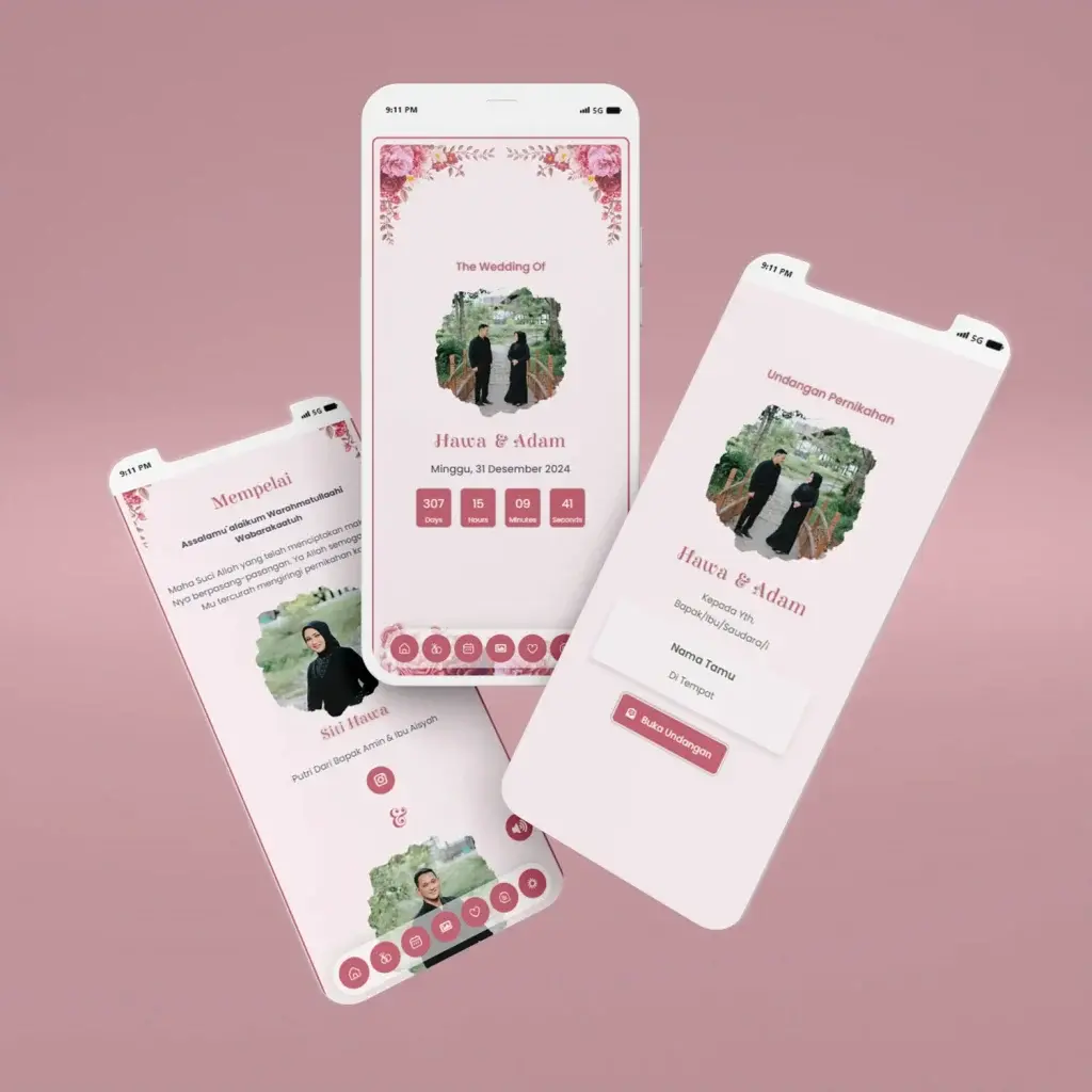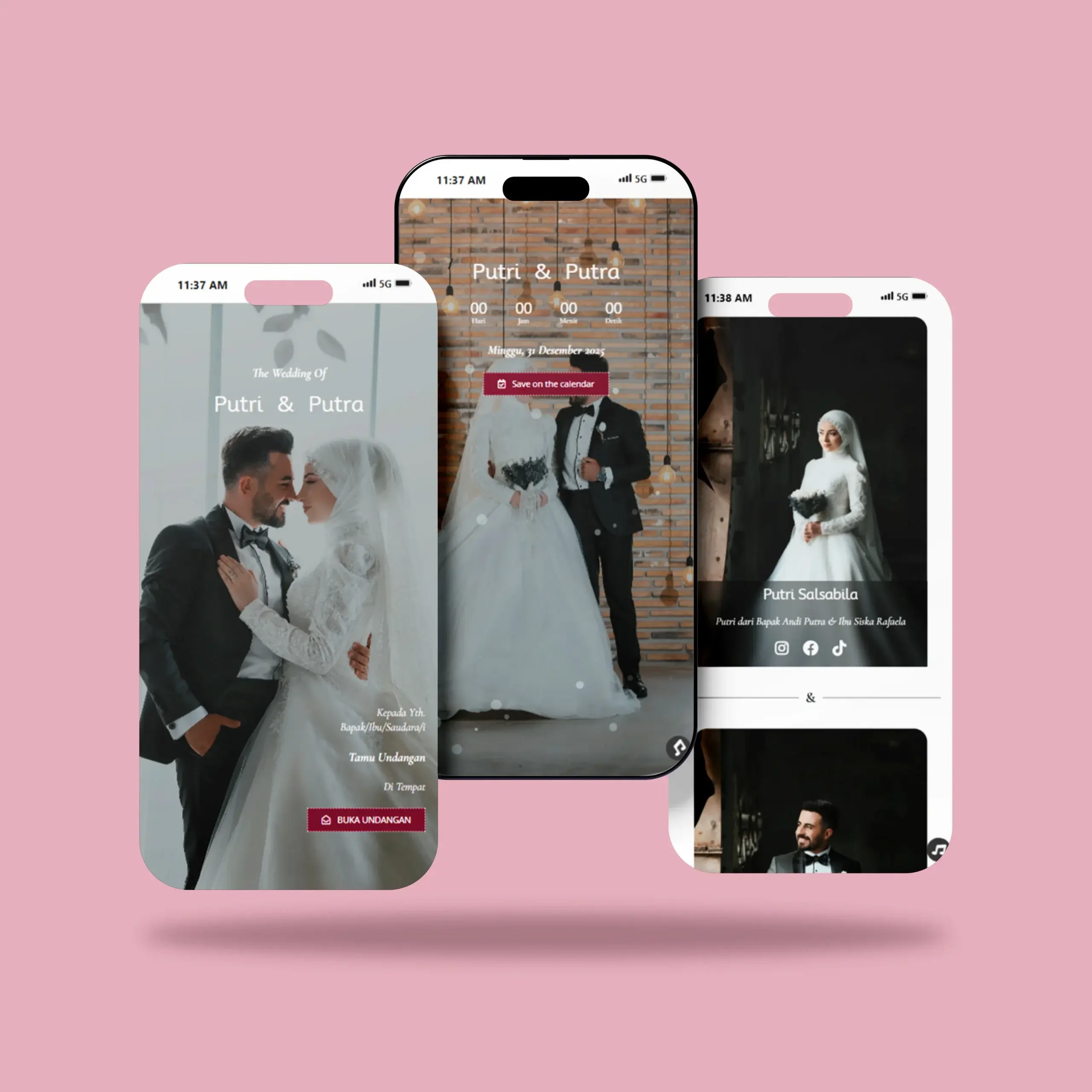 Kami menawarkan beragam fitur, termasuk RSVP interaktif, buku tamu digital, dan countdown acara untuk memberikan pengalaman yang lebih menyentuh. Dengan desain yang responsif dan mudah dibagikan, undangan Anda akan tampak menawan di mana pun. Temukan keindahan dalam setiap detail, dan biarkan kami membantu merayakan momen spesial Anda.